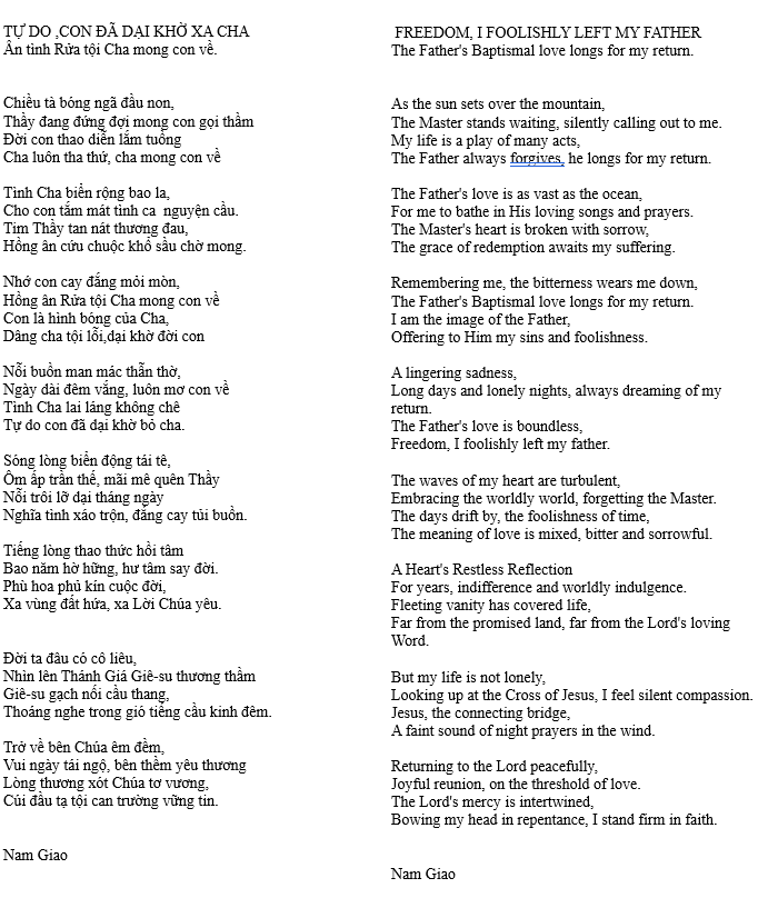TỰ DO,CON ĐÃ DẠI KHỜ XA CHA – FREEDOM, I HAVE FOOLISHLY LEFT THE FATHER