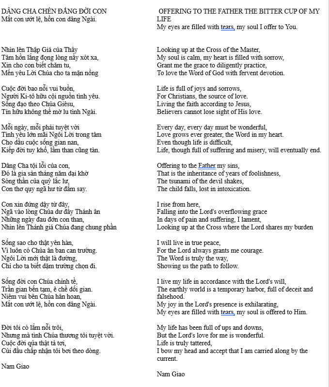 DÂNG CHA CHÉN ĐẮNG ĐỜI CON – OFFERING TO THE FATHER THE BITTER CUP OF MY LIFE
