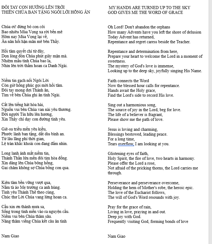 ĐÔI TAY CON HƯỚNG LÊN TRỜI – MY HANDS ARE TURNED UP TO THE SKY