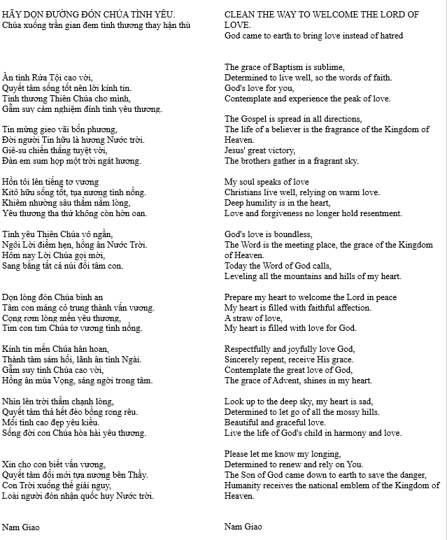 HÃY DỌN ĐƯỜNG ĐÓN CHÚA TÌNH YÊU – CLEAN THE WAY TO WELCOME THE LORD OF LOVE