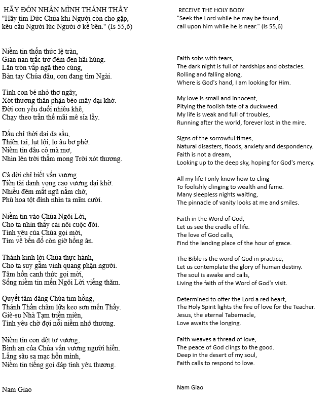 HÃY ĐÓN NHẬN MÌNH THÁNH THẦY – RECEIVE THE HOLY BODY OF THE MASTER