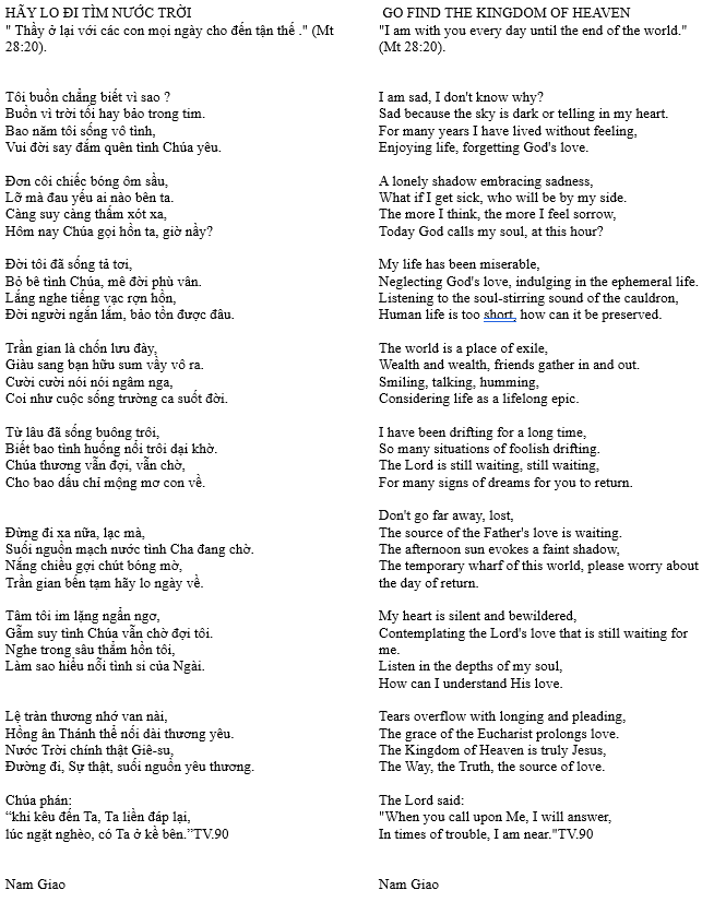 HÃY LO ĐI TÌM NƯỚC TRỜI – GO FIND THE KINGDOM OF HEAVEN
