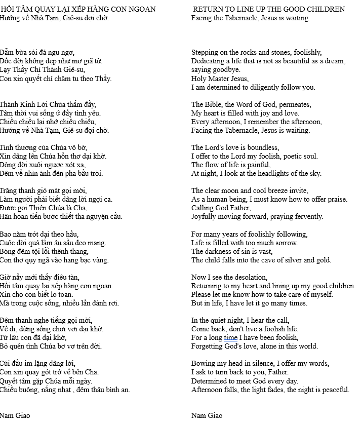 HỒI TÂM QUAY LẠI XẾP HÀNG CON NGOAN – RETURN TO LINE UP AS GOOD CHILDREN