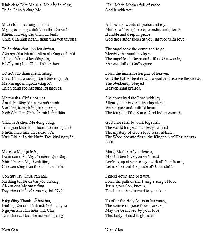 Kính chào Đức Ma-ri-a, Mẹ đầy ân sủng – Hail Mary, full of grace