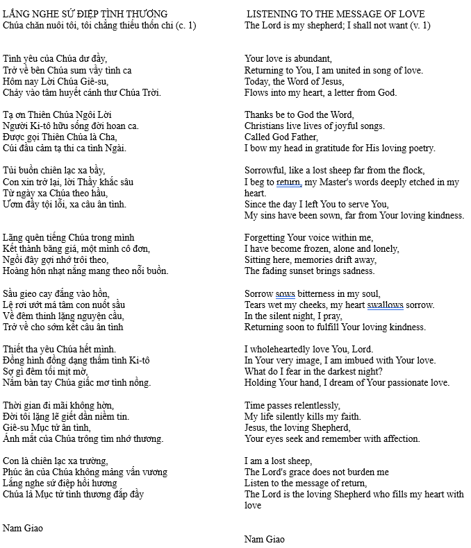 LẮNG NGHE SỨ ĐIỆP TÌNH THƯƠNG – LISTENING TO THE MESSAGE OF LOVE