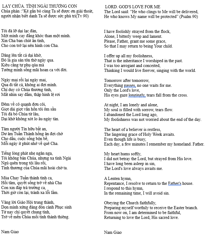 LẠY CHÚA. TÌNH NGÀI THƯƠNG CON – LORD. GOD’S LOVE FOR ME