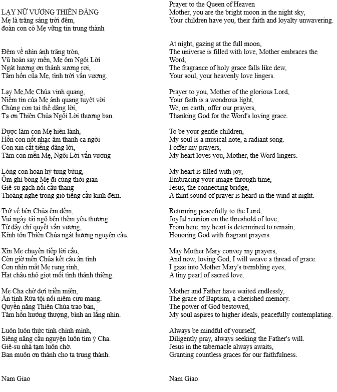 LẠY NỮ VƯƠNG THIÊN ĐÀNG – Prayer to the Queen of Heaven