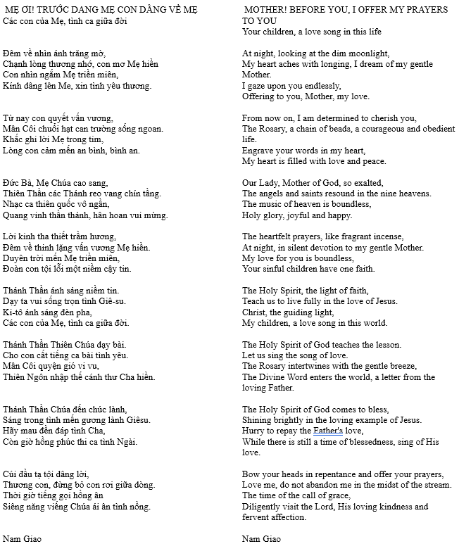 MẸ ƠI! TRƯỚC DANG MẸ CON DÂNG VỀ MẸ – MOTHER! BEFORE YOU, I OFFER MY PRAYERS TO YOU