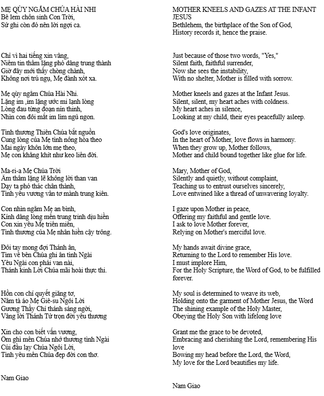 MẸ QÙY NGẮM CHÚA HÀI NHI – MOTHER KNEELS AND GAZES AT THE INFANT JESUS