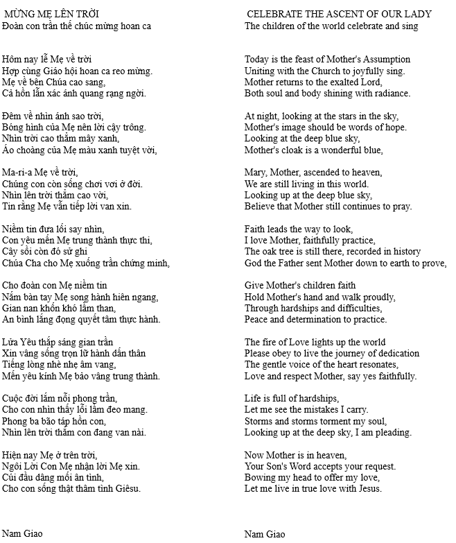 MỪNG MẸ LÊN TRỜI – CELEBRATE THE ASCENT OF OUR LADY
