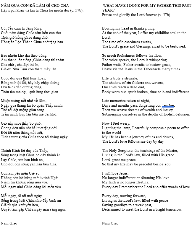 NĂM QUA CON ĐÃ LÀM GÌ CHO CHA ? – WHAT HAVE I DONE FOR MY FATHER THIS PAST YEAR?