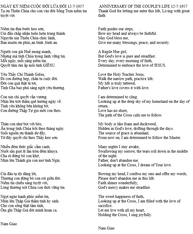 NGÀY KỶ NIỆM CUỘC ĐỜI LỨA ĐÔI 12-7-1957 – ANNIVERSARY OF THE COUPLE’S LIFE 12-7-1957