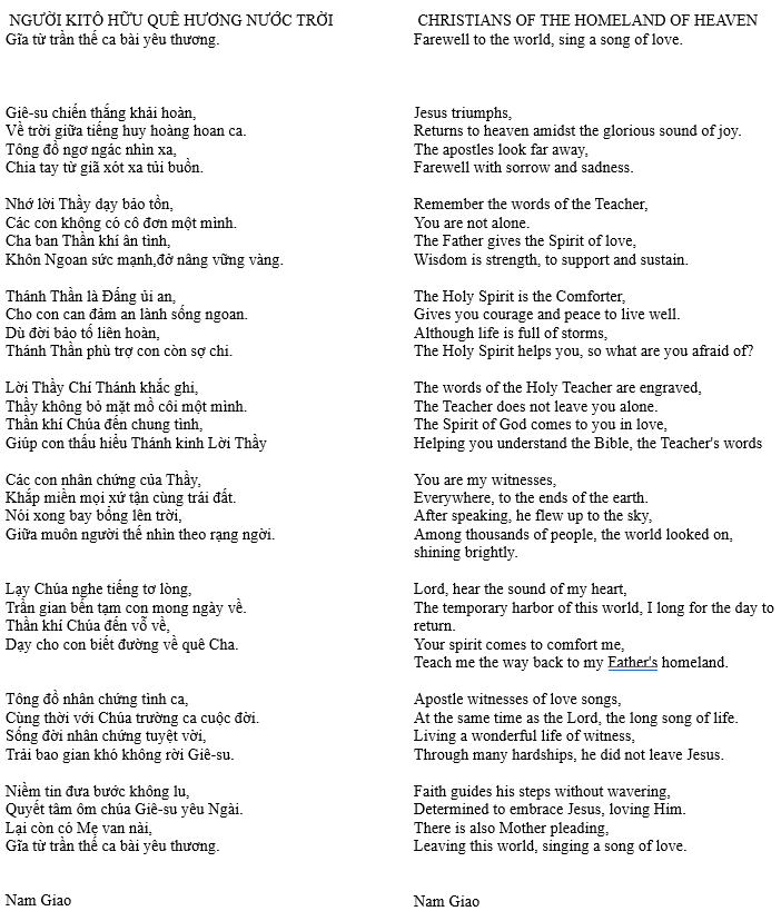 NGƯỜI KITÔ HỮU QUÊ HƯƠNG NƯỚC TRỜI – CHRISTIANS OF THE HOMELAND OF HEAVEN