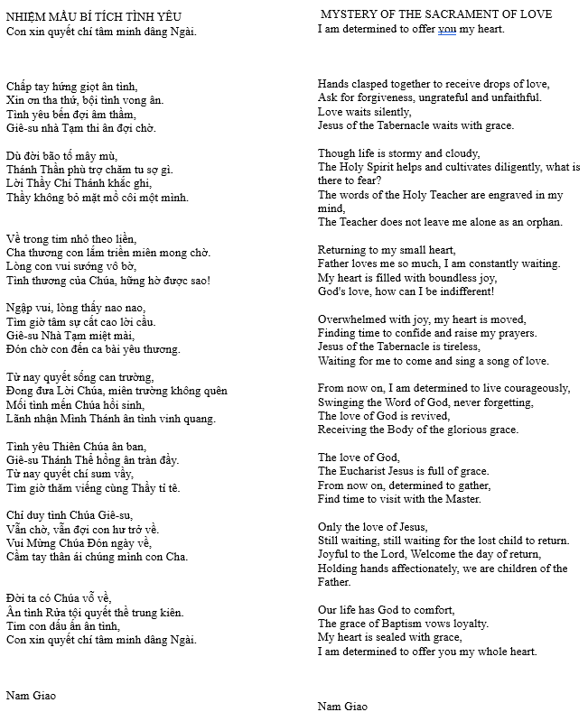 NHIỆM MẦU BÍ TÍCH TÌNH YÊU – MYSTERY OF THE SACRAMENT OF LOVE