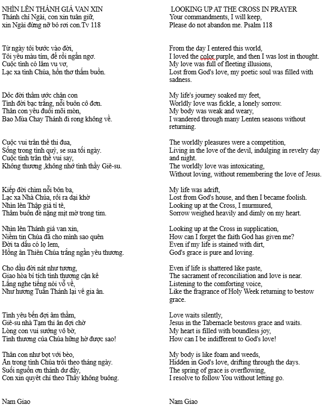 NHÌN LÊN THÁNH GIÁ VAN XIN – LOOKING UP AT THE CROSS IN PRAYER