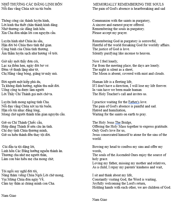 NHỚ THƯƠNG CÁC ĐẲNG LINH HỒN – MEMORIALLY REMEMBERING THE SOULS