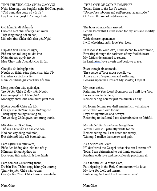 TÌNH THƯƠNG CỦA CHÚA CAO VỜI – THE LOVE OF GOD IS IMMENSE