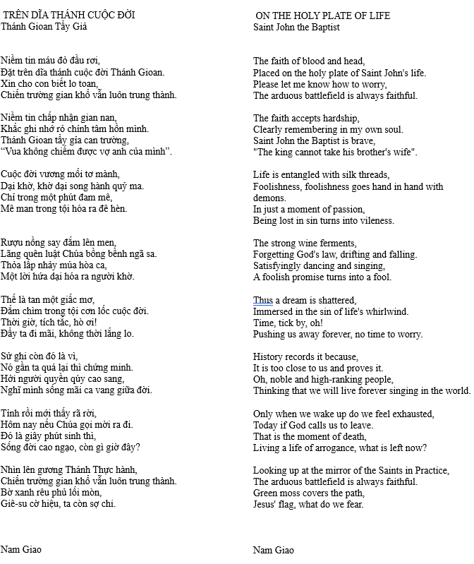 TRÊN DĨA THÁNH CUỘC ĐỜI – ON THE HOLY PLATE OF LIFE