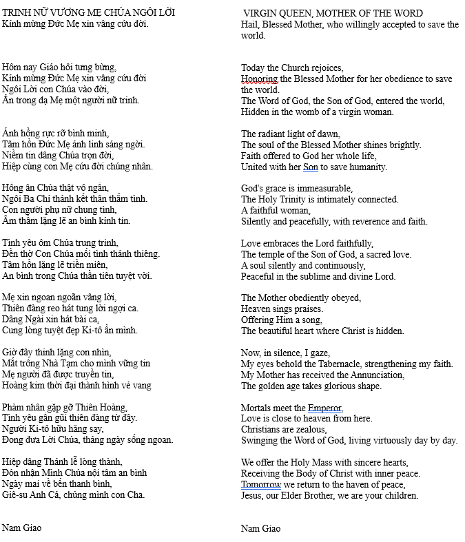 TRINH NỮ VƯƠNG MẸ CHÚA NGÔI LỜI – VIRGIN QUEEN MOTHER OF THE WORD